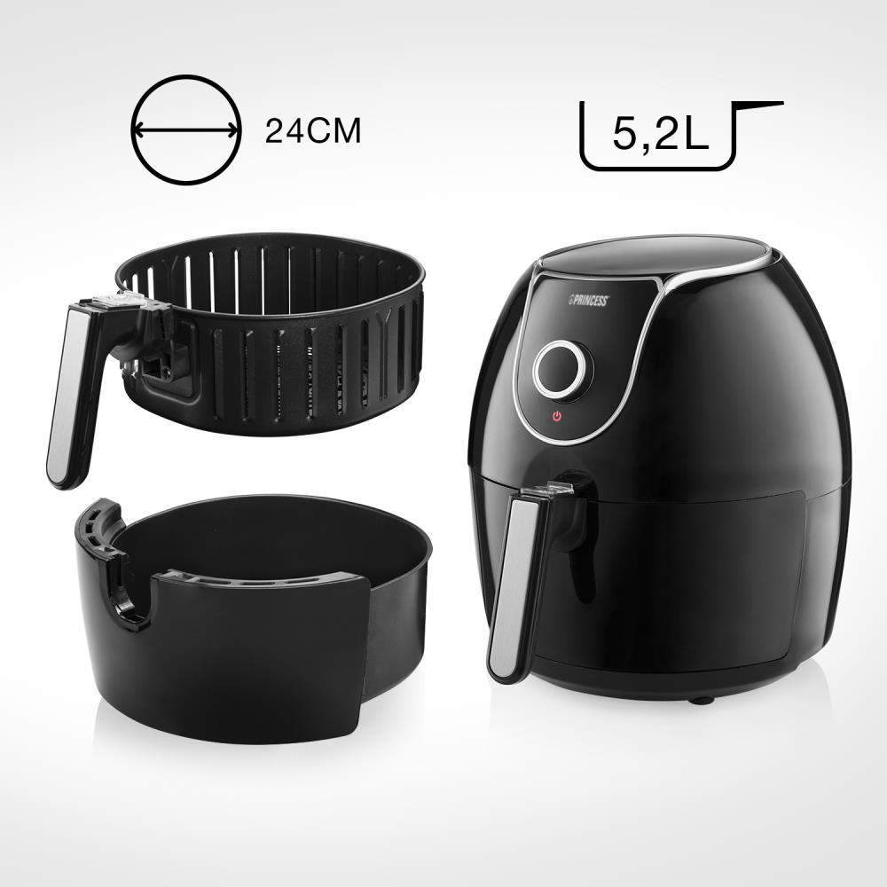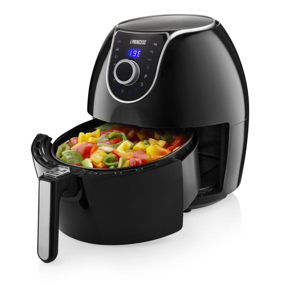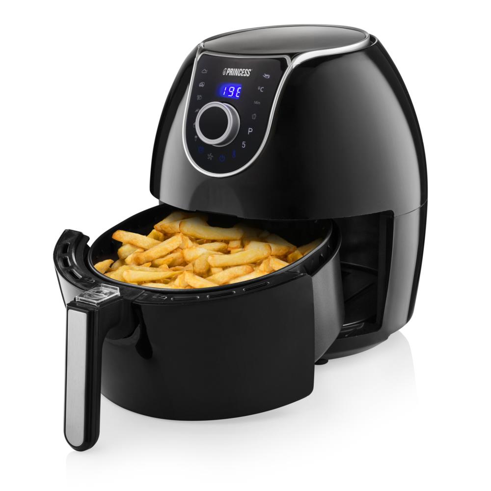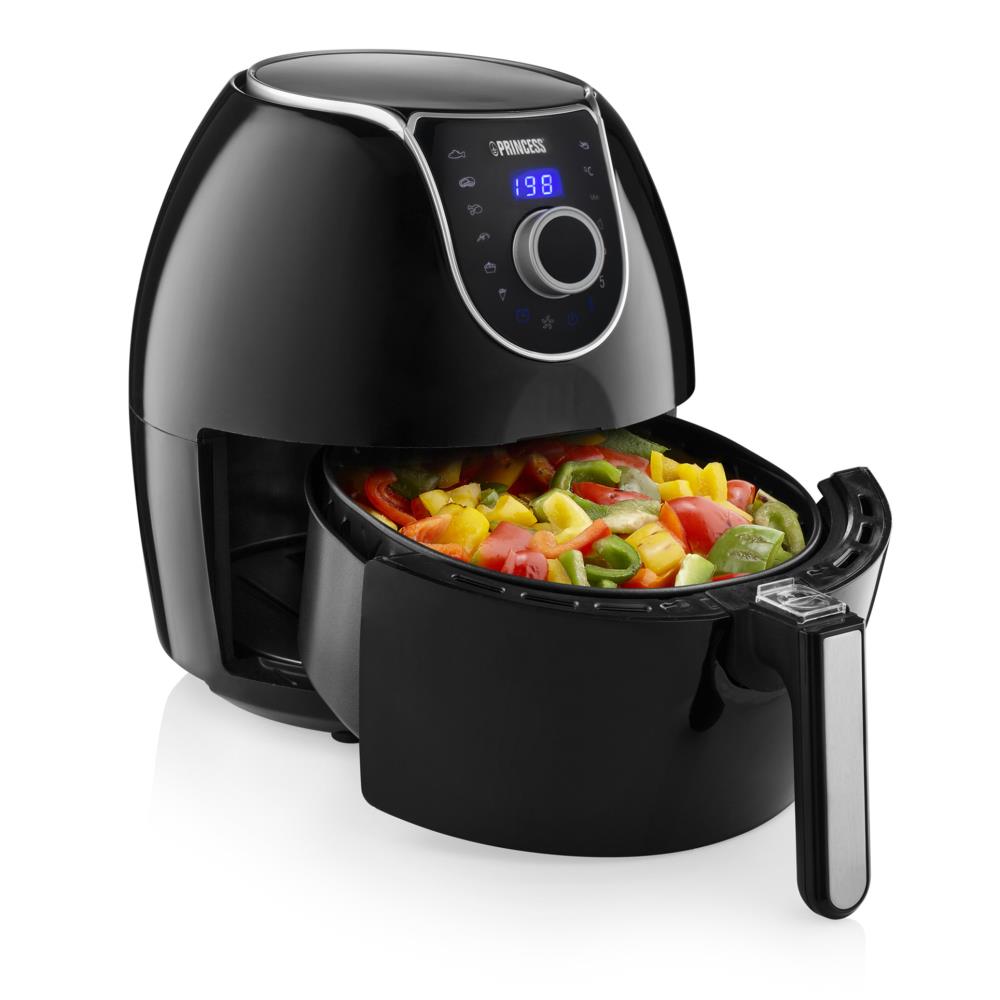 Princess 182055. Tipo de produto: Frigideira a ar quente, Capacidade: 5,2 l, Capacidade da fritadeira: 1,5 kg. Tipo de construção: Individual, Cor da caixa: Preto, Prateado, Tipo de controlo: Rotativo, Toque. Tipo de monitor: LCD. Potência: 1700 W, Tipo de ficha: Tipo F