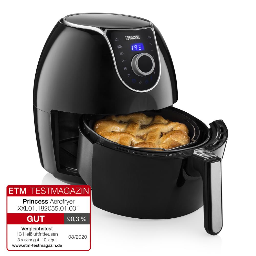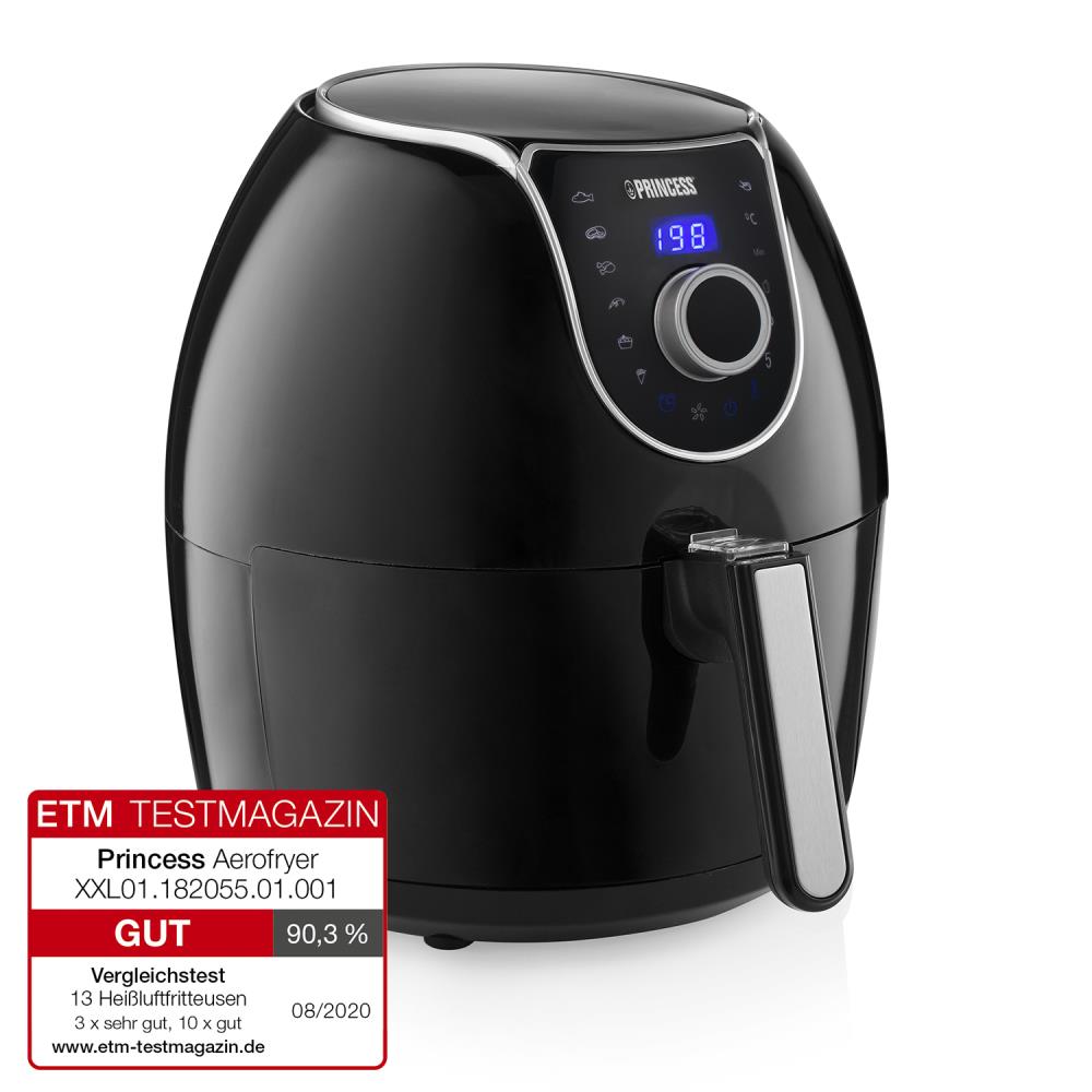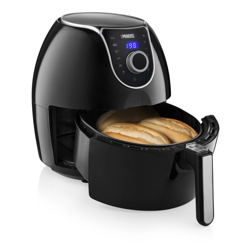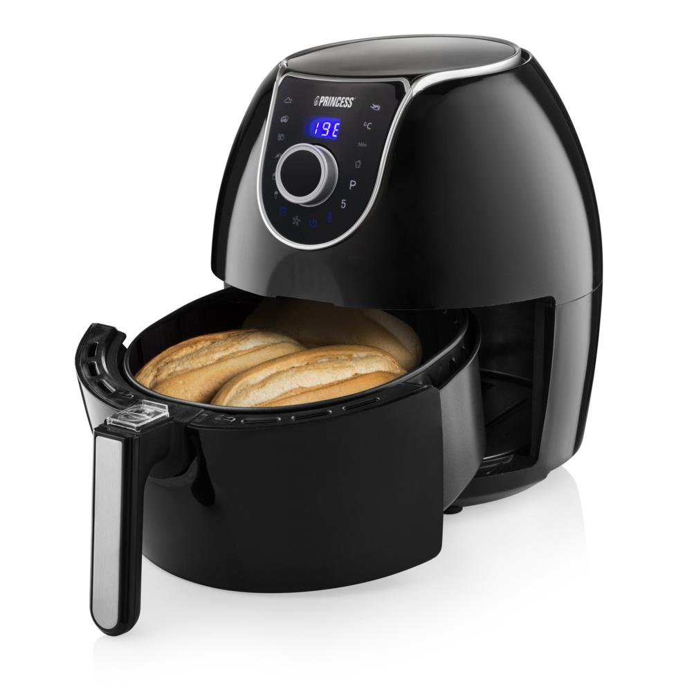 Princess 182055. Tipo de produto: Frigideira a ar quente, Capacidade: 5,2 l, Capacidade da fritadeira: 1,5 kg. Tipo de construção: Individual, Cor da caixa: Preto, Prateado, Tipo de controlo: Rotativo, Toque. Tipo de monitor: LCD. Potência: 1700 W, Tipo de ficha: Tipo F